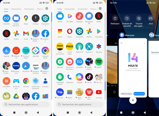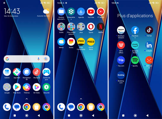 À l’image des autres mobiles de la marque, il y a un très grand nombre d’applications préinstallées. On le regrette toujours un peu, mais cela permet à la marque de proposer des tarifs particulièrement attractifs ayant noué des opérations commerciales avec des sociétés d’édition d’applications pour qu’elles soient présentes au sein des mobiles POCO. Il y a donc AliExpress, Amazon Music, Block Puzzle Guardian, Booking.com, Boutique Amazon, Bubble Shooter And Friends, Crazy Juicer, Dust Settle, Facebook, Jewels Blast, LinkedIn, Netflix, Opera, Pages Jaunes, Snake Zone .io, Spotify, TikTok, Tile Fun, Trip.com, Word Trip et WPS Office ainsi que toutes les applications Google et certaines signées Xiaomi.