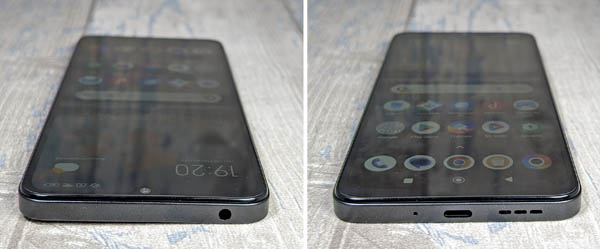 En faisant le tour de l’appareil, notez la présence du bouton de mise en veille et le double bouton pour gérer le volume qui sont installés sur le profil droit. Le bouton de mise en veille est légèrement plus enfoncé que celui du volume. Il sert de lecteur d’empreintes digitales. Celui-ci est rapide et efficace. Sur le profil supérieur, il y a un connecteur audio pour brancher un casque. À la différence de tous les autres mobiles de la marque et des Xiaomi, il n’y a pas d’émetteur infrarouge, ce qui aurait permis de le transformer en une télécommande universelle, intéressant à ce prix. Le tiroir à cartes SIM est placé sur le profil gauche. Il peut contenir deux cartes SIM en plus d’une carte mémoire micro SD pour étendre la capacité de stockage interne, ce qui est toujours une bonne chose. Sur la tranche inférieure, il y a le connecteur USB-C, un haut-parleur et un microphone. Le son proposé par le POCO C65 est mono. Il est tout juste satisfaisant pour un smartphone, car il sonne très clair et manque de chaleur. On peut s’en contenter pour quelques sons d’une vidéo, mais l’écoute au casque est bien meilleure pour vraiment profiter de la musique, d’un film ou d’une série, par exemple.