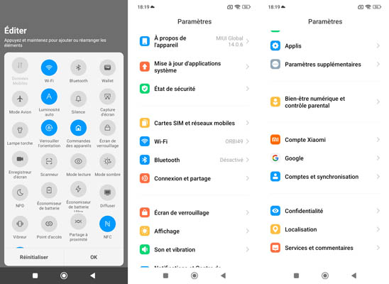 Comme sur les autres modèles de la marque, on retrouve l’interface avec de nombreux paramètres et la possibilité de se connecter à son compte Mi. Lors du premier démarrage de l’appareil, il faut passer un bon moment à faire toutes les mises à jour nécessaires. Une fois cela fait, le système et les applications occupent 35,9 Go sur les 256 Go théoriquement disponibles sur notre modèle de test sachant qu’il y a une autre version avec 128 Go. Heureusement qu’il y a une possibilité d’insérer une carte mémoire.