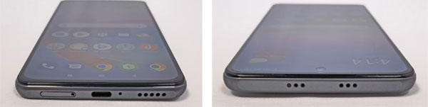 Si on fait le tour du mobile, le profil droit présente le bouton d'alimentation qui sert également de lecteur d'empreinte digitale. Il y a aussi le double bouton gérer le volume. Ceux-ci sont intégrés au sein d'un léger décrochement du profil qui revient un peu plus vers l'arrière du smartphone dans un beau mouvement. L'encadrement est en plastique. Il laisse passer les ondes radio n'ayant ainsi pas besoin d'antennes spécifiques comme on peut en voir sur les autres mobiles qui profitent d'un châssis en métal. Sur le profil supérieur, il y a un haut-parleur. Les autres petits trous qui ressemblent à un autre haut-parleur dissimulent en réalité le trou pour le microphone et le port infrarouge qui permet de transformer le smartphone en une télécommande universelle pour piloter une télévision, un lecteur DVD, etc. Il y a un autre haut-parleur sur le profil inférieur pour délivrer un son stéréo.