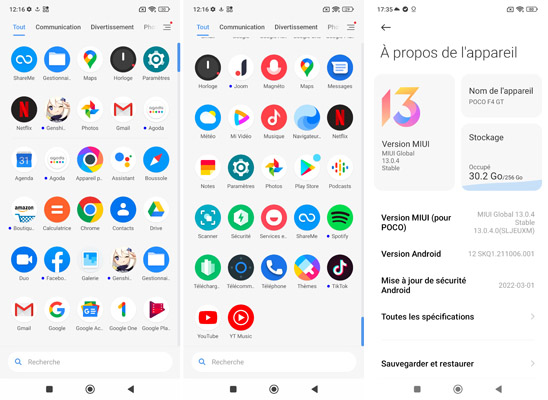 - Système d'exploitation : Android 12 avec une surcouche MIUI 13.0.4