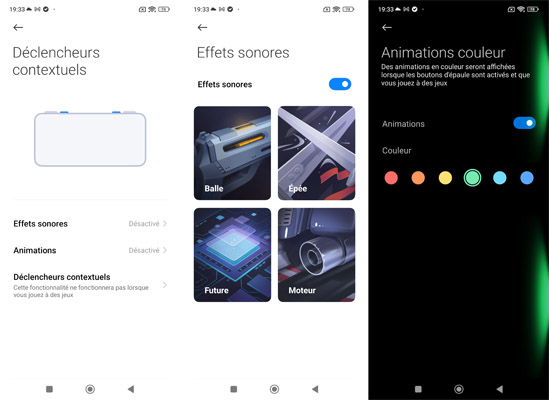 C'est aussi le cas du Vivo V23 5G, mais sur une diagonale de 6,44 pouces et de 6,4 pouces pour le Google Pixel 6. Ce dernier a le « désavantage » de proposer une fréquence de rafraîchissement de 90 Hz contre 120 Hz pour le Poco F4 GT (et 60 Hz pour le Vivo V23 5G) affichant des défilements bien plus fluides et agréables à consulter. Dans les paramètres, il est possible de bloquer la fréquence sur 60 ou 120 Hz, ou de laisser le mobile choisir de manière automatique, selon les applications en cours d'utilisation et permettant ainsi d?économiser de la batterie. Il y a un mode Lecture pour limiter la fatigue oculaire et on peut sélectionner l'un des schémas de couleur proposés dans les paramètres entre les modes Intense, Saturé, couleur originale ou aller dans les options avancées pour choisir entre le mode P3 et le sRGB. Plusieurs fonctions d'optimisation des contenus sont disponibles : Super Résolution, amélioration de l'image par intelligence artificielle, amélioration du mode HDR par IA et le mode MEMC qui permet d'optimiser le rendu des vidéos en améliorant la fluidité des images. Même si la luminosité offerte par le Poco F4 GT est plus faible que les smartphones plus haut de gamme, l?écran reste lisible en extérieur. L?écran a des bordures noires dont l?épaisseur est raisonnable et identique qu'il s'agisse des bords latéraux, supérieurs ou inférieurs, ce qui est une bonne chose. On apprécie sa protection avec la technologie Corning Gorilla Victus, soit la plus avancée et la plus résistante à ce jour. Enfin, notez que le taux d?échantillonnage de l?écran est ici de 480 Hz soit plus rapide que la plupart des smartphones sauf ceux vraiment dédiés au gaming, mais avec lequel le Poco F4 GT peut faire jeu égal sur ce point. Les joueurs apprécieront.