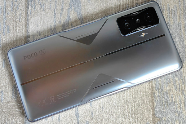 Le smartphone POCO F4 GT hérite d'un design qui le classe définitivement dans la catégorie des mobiles gaming. En effet, il bénéficie de lignes particulièrement originales notamment dans son dos avec un revêtement très qualitatif et racé, comme d'autres mobiles pour joueurs. Il arbore ainsi un côté clairement futuriste avec certaines parties mates tandis que des lignes sont brillantes. Les deux profils gauche et droit reviennent légèrement sur le dos, au centre, lorsqu'on tient le portable en position paysage. La symétrie est parfaite et on sent qu'on a affaire à un appareil très bien fini et qui profite d'une bonne qualité de fabrication. Dans le coin supérieur, à gauche, il y a le bloc d'optiques qui est sur un fond noir. Il dépasse du reste du dos du smartphone ce qui créé un léger déséquilibre lorsqu'on le pose à plat sur un bureau, par exemple. Juste à côté, il y a le flash qui se présente sous la forme originale d'un éclair. Notez que le smartphone dispose d'une option Lumière LED qui permet d?être averti en cas d'arrivée de notifications ou d'appels téléphoniques si l'appareil est retourné, la LED étant au niveau des capteurs photo.