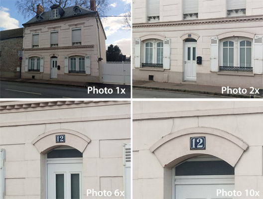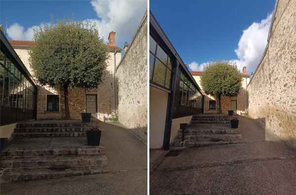 L'interface de l'application Appareil photo est classique avec les options principales en haut dont certains modes de prise de vue, ce que nous n'aimons pas trop, préférant qu'ils soient tous au même endroit. De gauche à droite, il y a les modes Pro, Vidéo, Photo, Portrait et Plus. Ce menu permet d'accéder aux autres modes : Nuit, 50M, vidéo courte, Panorama, Documents, Ralenti, Accéléré sachant que le menu est personnalisable afin de faire glisser en bas un ou plusieurs modes souvent utilisés. Plusieurs niveaux de zoom sont immédiatement disponibles ce qui facilite ce type d'opération : 0,6x, 1x, 2x, 4x, 6x, 8x et 10x sachant que l'agrandissement est purement numérique donc pas vraiment exploitable au-delà de 2x.