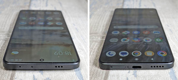 La tranche supérieure propose l’émetteur infrarouge (pour transformer le mobile en une télécommande universelle), un microphone, un haut-parleur. Exit le port audio jack 3,5 mm. Enfin, sur la tranche inférieure, il y a le deuxième haut-parleur, le connecteur USB-C, un microphone et le tiroir à cartes SIM. Le POCO X6 Pro peut accepter deux cartes SIM simultanément sans possibilité d’insérer une carte mémoire micro SD. Comme son prédécesseur, le compartiment est protégé contre l’eau et, globalement, le mobile est résistant aux éclaboussures, mais pas plus. Dommage, car on a droit à de plus en plus de smartphones de milieu de gamme qui offrent une totalement étanchéité, comme c’est le cas pour le Samsung Galaxy A54 ou le Motorola edge 40 neo.