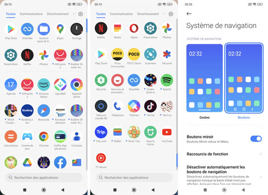 Comme sur les autres modèles de la marque, on retrouve l’interface avec de nombreux paramètres et la possibilité de se connecter à son compte Mi. Sur la page d’accueil, un balayage depuis le côté gauche du poinçon du capteur photo frontal permet d’accéder aux notifications tandis qu’un balayage du côté droit déroule les principaux raccourcis des fonctions et la possibilité de gérer le niveau de luminosité. L’application Xiaomi Home est particulièrement mise en avant. Les boutons de raccourcis sont spécialement imposants, ce qui est une bonne chose évitant les erreurs de manipulations.