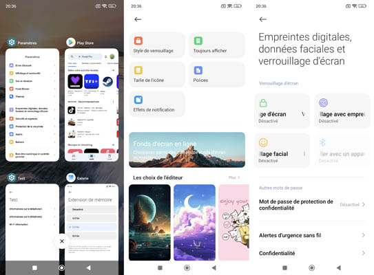 Le gestionnaire multitâches était très complet, mais il a perdu des fonctionnalités entre MIUI et HyperOS. En effet, impossible désormais de lancer le nettoyage ou l’analyse de sécurité. Seules les applications en cours de tâche de fond y sont affichées, ce qui reste toutefois le principe de base. Évidemment, l’interface est personnalisable avec différents thèmes et des fonds d’écran divers et variés.
